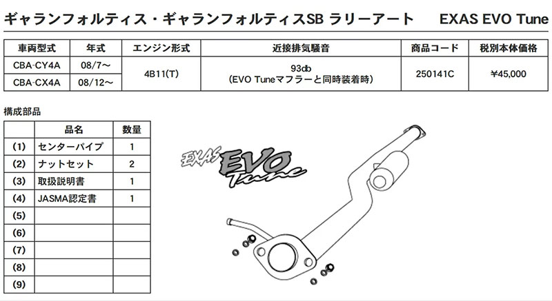GPスポーツ EXAS エボチューン センターパイプ ギャランフォルティススポーツバック CBA-CX4A H20.12〜 4B11(T) ラリーアート